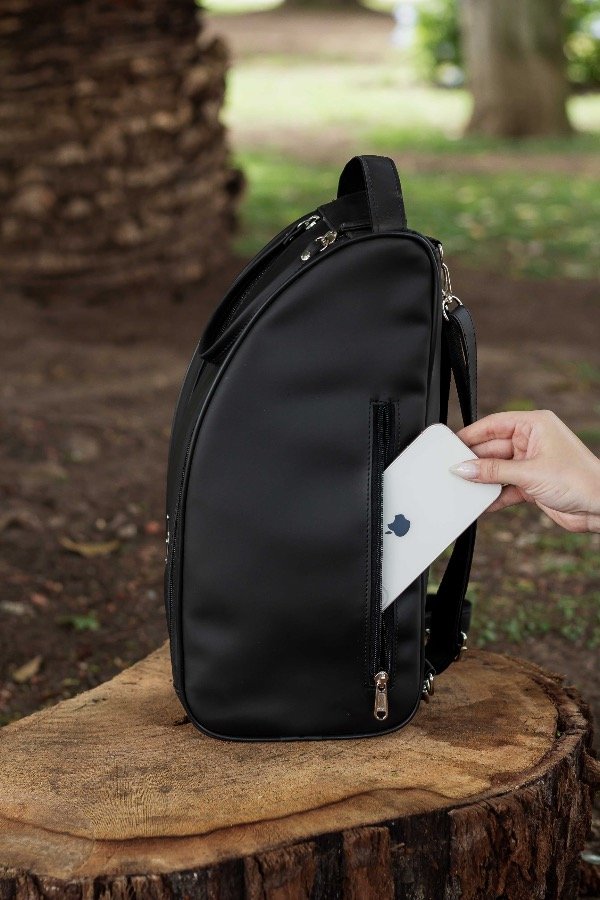 Diseñada para el uso diario, fabricada en eco cuero engomado, fácil de limpiar y resistente.