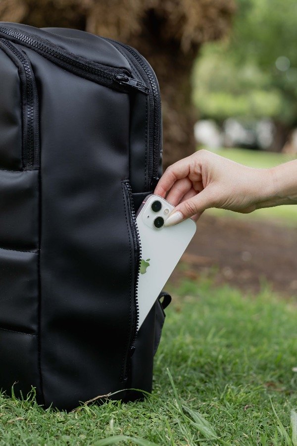 Incluye porta termo y latas desmontable, lo que permite usarla tanto como matera o como mochila urbana, adaptándose a cada momento del día. Además, cuenta con porta notebook de hasta 16” y una variedad de bolsillos pensados para llevar todo organizado.